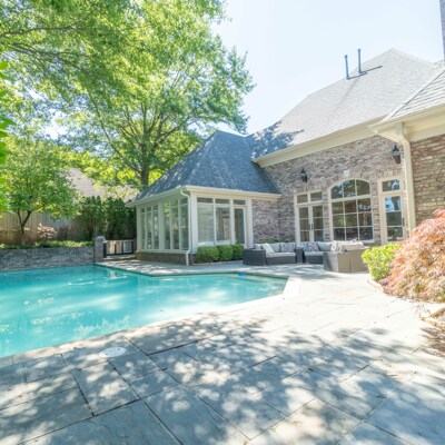 Highly sought-after E Memphis gated community next door to Lausanne School. Renovated with Two luxury master bedrooms/bathrooms down. Wonderful 6 seat island in kitchen with gas cooktop, Sunroom overlooks gunite pool. Stainless Steel appliances/granite countertops. This one is amazing!